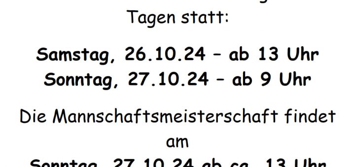 Aktuelles Stockschützen 10. Oktober 2024 von Florian Singer · Published 10. Oktober 2024 Termin – Vereinsmeisterschaft Stockschützen 26.10.2024