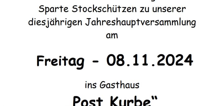 Aktuelles Stockschützen 10. Oktober 2024 von Florian Singer · Published 10. Oktober 2024 Termin – Jahreshauptversammlung der Stockschützen am 08.11.2024